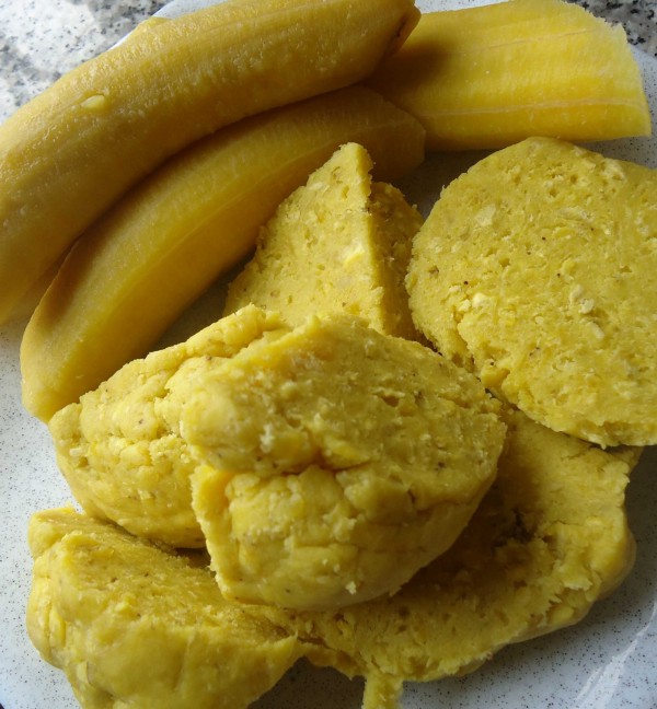 Plantains murs bien bouillis mais pas poto-poto puisqu’il faut quand même le piler, manioc bien bouilli séparément (pour moi), Isabelle sort le mortier et le pilon puis les lave (vu le temps que l’on peut mettre sans l’utiliser, il vaut mieux et pour vous aussi). Ah Minceee!!! En kaba ngondo, la tenue de tous les (vrais) combats de cuisine pour toute mater camer, assise sur le banc en bois (sinon la nourriture ne prend pas le goût du pays), 2 plantains pour 1 manioc, voilà mon Foutouà moi qui prend forme au fur et à mesure. Eh ah! il n’y a pas de petite recette; j’étais contente jusqu’àaaaaaaa. J’ai gouté même 6 fois comme ça. Bah oui oui; il ne faut pas oublier que “Ne pas goûter c’est perdre l’occasion de ravir les palais de ses convives”même si ce sont des enfants de moins de 10 ans.